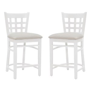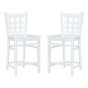Linon Flint Set of 2 Lattice Back Counter Stools in Glossy White Beechwood