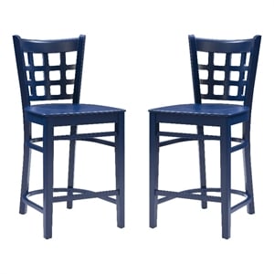 Linon Flint Lattice Back Counter Stools Set of 2 in Glossy Navy Beechwood