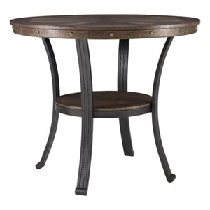 Linon Franklin Wood and Steel Counter Height 42" Round Pub Table in Pewter