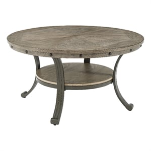 Linon Franklin Round Coffee Table Gray Wood Finish Steel Base in Pewter