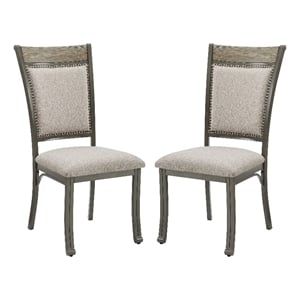Linon Franklin Metal Upholstered Set of Two Dining Side Chairs in Pewter