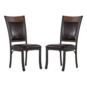 Linon Franklin Metal Faux Leather Dining Chairs in Rustic Umber Brown (Set of 2)
