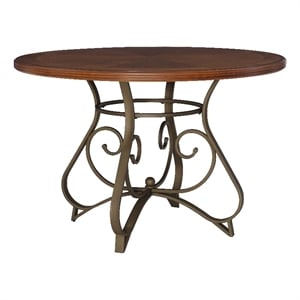 Linon Hamilton 42" Round Cherry Wood Dining Table Base in Matte Pewter & Bronze
