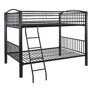 Linon Heavy Metal Full Over Full Bunk Bed Attached Ladder in Black