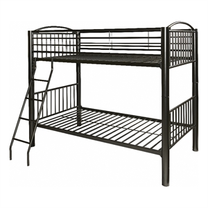 Linon Heavy Metal Twin Over Twin Bunk Bed Attached Ladder in Black