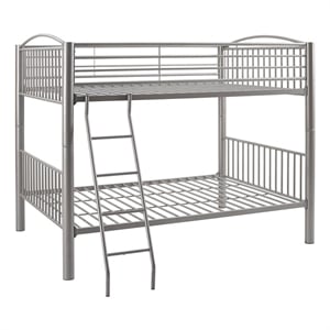 Linon Heavy Metal Full Over Full Bunk Bed Attached Ladder in Pewter Finish
