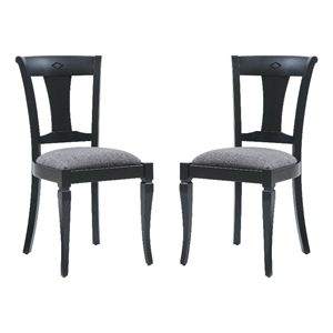 Linon Jared Set of 2 Side Chairs Grey Padded Seats Frame in Black Beechwood