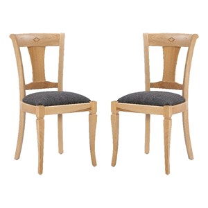 Linon Jared Set of Two Side Chairs Grey Padded Seats Frame in Natural Beechwood