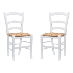 Linon Karsyn Set of Two Wood Side Chairs Ladder Back Rush Seat in White Finish