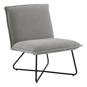 Linon Mavis Accent Chair Upholstered in Gray Sherpa with Black Metal Legs