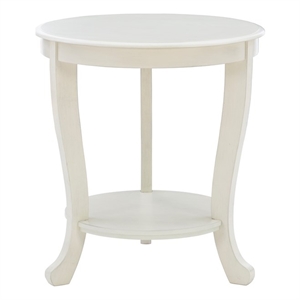 Linon Merce 22" Round Side Table with Bottom Shelf in Off White Painted Wood