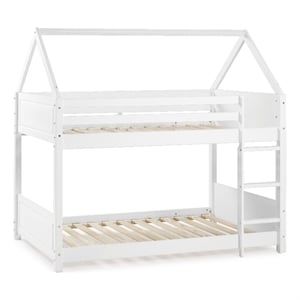Linon Merritt Wood Youth Twin Bunkbed with Guard Rail on Top in White