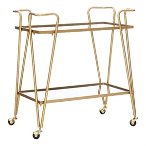 Linon Mia Metal and Mirrored Mid-Century 2 Level Rolling Bar Cart in Gold