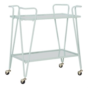 Linon Mia Metal and Mirrored Mid Century 2 Level Rolling Bar Cart in Mint Green