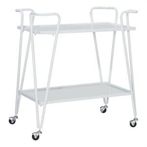 Linon Mia Metal and Mirrored Mid Century 2 Level Rolling Bar Cart in White