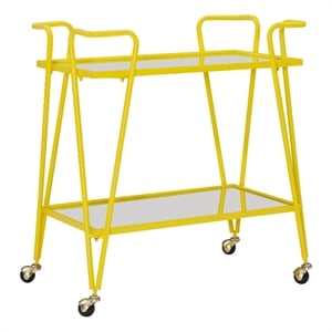 Linon Mia Metal and Mirrored Mid Century 2 Level Rolling Bar Cart in Yellow