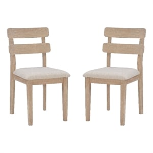 Linon Miles Wood Set of 2 Upholstered Ladder Back Dining Chairs in Natural Brown