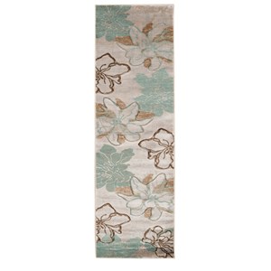 Linon Miso Eleanor Polypropylene 2'6"x8' Rug in Ivory and Turquoise