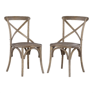 Linon Morgan Set of 2 Rustic X-Back Bentwood Dining Chairs in Gray Washed Wood