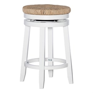 Linon Morgan 25.5" Wood Counter Stool Natural Seagrass Swivel Seat in White