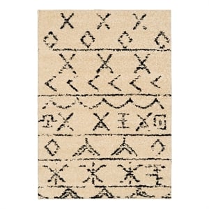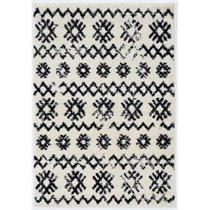 Linon Morrocan Marrakes Polypropylene 3'x5' Rug in Ivory and Black