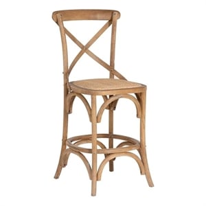 Linon Moxy 24" Wood Counter Stool with X-Back and Rattan Seat in Gray Wash