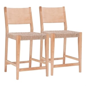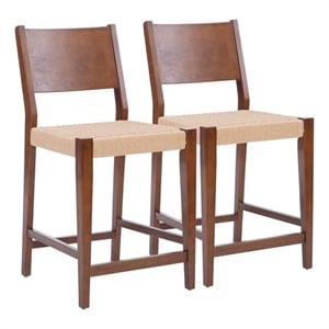 Linon Patty Wood 24" Counter Stools with Woven Seat Set of 2 in Natural Brown