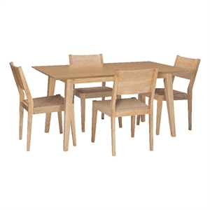 Linon Patty Five Piece Dining Set with Woven Seats in Natural Stained Wood