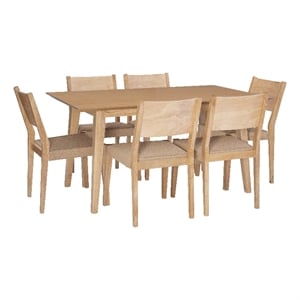 Linon Patty 7 Piece Dining Set with Woven Seats in Natural Brown Stained Wood