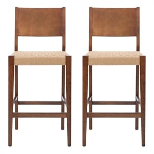 Linon Patty Rubberwood Barstools Handwoven Rope Seat Set of 2 in Natural Brown