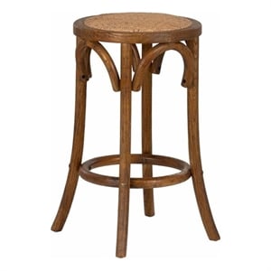 Linon Rae 24" Wood Backless Counter Stool Round Rattan Seat in Walnut Finish