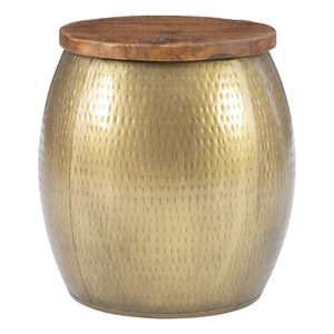 Linon Reid Metal and Wood Drum Side Table with Storage in Gold