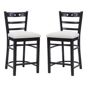 Linon Sloan Set of 2 Padded Seat Ladder Back Counter Stools in Black Beechwood