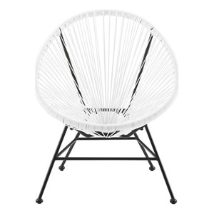 Linon Tallie Outdoor Oval Chair Handwoven Wicker Roping Steel Frame in White