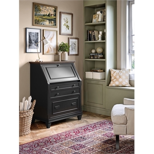 Hartford Wood Drop-Lid Secretary Desk Fully Assembled Black