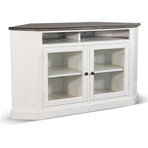 Sunny Designs Carriage House 55" Wood Corner TV Stand in Dark Brown/White