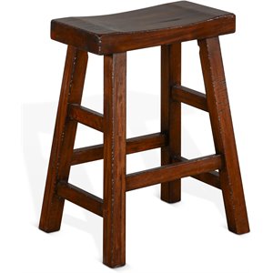 Sunny Designs 24" Saddle Seat Mahogany Wood Stool in Medium Brown (Set of 2)