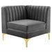 Pemberly Row Modern Channel Tufted Performance Velvet Corner Chair in Gray