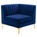 Pemberly Row Modern Channel Tufted Performance Velvet Corner Chair in Navy