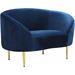 Pemberly Row Modern 18.5&quotH Velvet Accent Chair in Navy and Gold