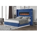Pemberly Row Upholstery Wooden Queen Bed w/ Ambient lighting-Blue Velvet Finish