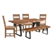 Pemberly Row 6-piece Upholstered Live Edge Solid Wood Dining Set in Brown