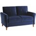 Pemberly Row Tufted Velvet Upholstered Loveseat in Blue and Walnut