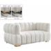 Pemberly Row Contemporary Velvet/Stainless Steel Loveseat in Cream/Brushed Gold