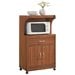 A microwave cart with a butcher block countertop can do double duty as kitchen prep space. Choose a tall kitchen cart or stand that is the same height as you kitchen counters. Most have been designed with a below-counter shelf for the microwave itself to rest upon. This allows you to get the very most from your kitchen storage.