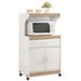 A space saver white microwave cart is ideal for most. Choose one with open shelves that allow for easy access to your kitchen utensils. Try a microwave cart with closed cabinet doors to hide away your mess. A drawer is a great spot to store extra utensils or linens. Other kitchen utility cart designs feature a hutch which adds even more usable space to your kitchen.