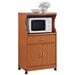 A microwave cart with a butcher block countertop can do double duty as kitchen prep space. Choose a tall kitchen cart or stand that is the same height as you kitchen counters. Most have been designed with a below-counter shelf for the microwave itself to rest upon. This allows you to get the very most from your kitchen storage.