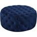 Pemberly Row Transitional Round Pouf in Dark Blue Velvet Fabric