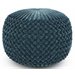 Pemberly Row Round Pouf in Teal Green Velvet Fabric with Woven Details