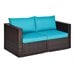 Pemberly Row 3PCS Patio Rattan Set Cushioned Conversation Set Sofa Turquoise